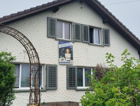 Ab sofort können auf unserer Geschäftsstelle im Franke Gut in Aarau Flyer, Postkarten und Plakate bezogen werden. Wir freuen uns über Personen, die bei sich zuhause ein Plakat an die Hausfassade oder den Balkon hängen oder im Garten, gut sichbar für Passentinnen und Passanten aufstellen.